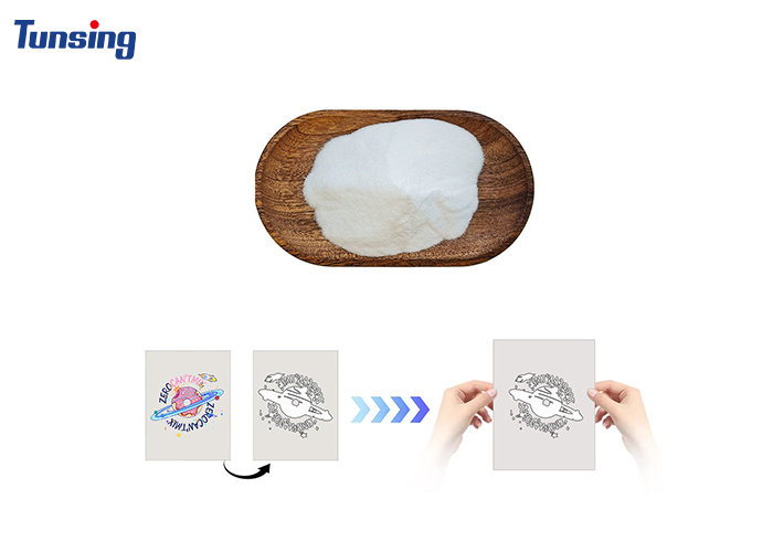 DTF TPU Polyurethane Transfer Hot Melt High Elasticity Powder is a polyurethane thermoplastic powder hot melt adhesive. It features a soft feel with certain resilience and excellent processability, providing superior adhesion to fabric, cotton, blended fabric, TPU, and PVC materials.